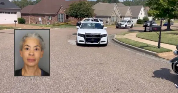 Organy ścigania zostały wezwane do dzielnicy w Cordova w stanie Tennessee w odpowiedzi na strzelaninę (za pośrednictwem biura szeryfa w hrabstwie Shelby (Tenn).). Wstawka: to zdjęcie z rezerwacji dostarczone przez biuro szeryfa hrabstwa Shelby przedstawia Monikę Johnson. Monica Johnson-Markwork, lat 51, z Kordowy na przedmieściach Memphis, została oskarżona o napaść podczas strzelaniny, podają serwisy informacyjne, cytując oświadczenie biura szeryfa hrabstwa Shelby. (Biuro szeryfa hrabstwa Shelby za pośrednictwem AP)
